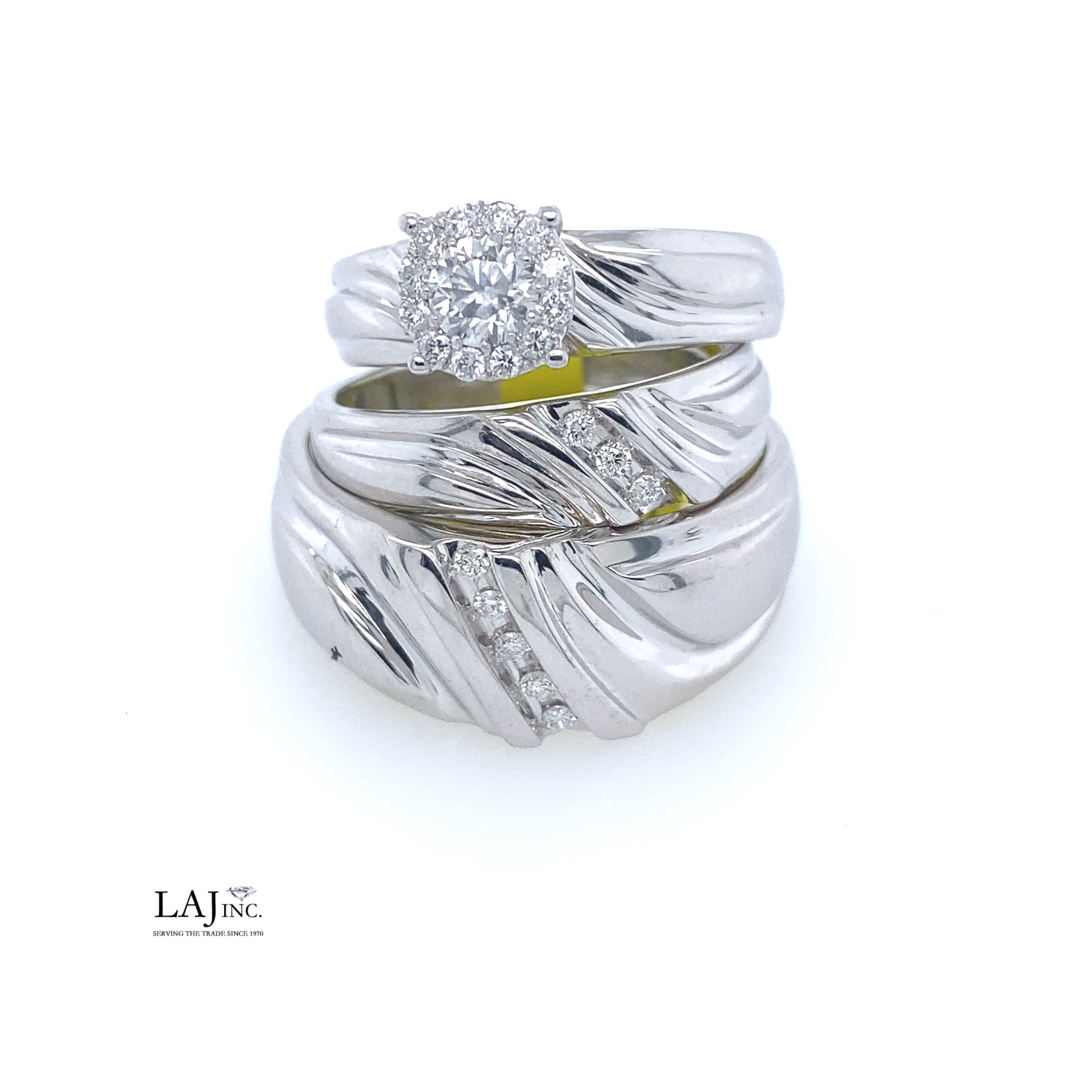 0.56Ct Diamond Bridal Trio Ring Set 14k WG