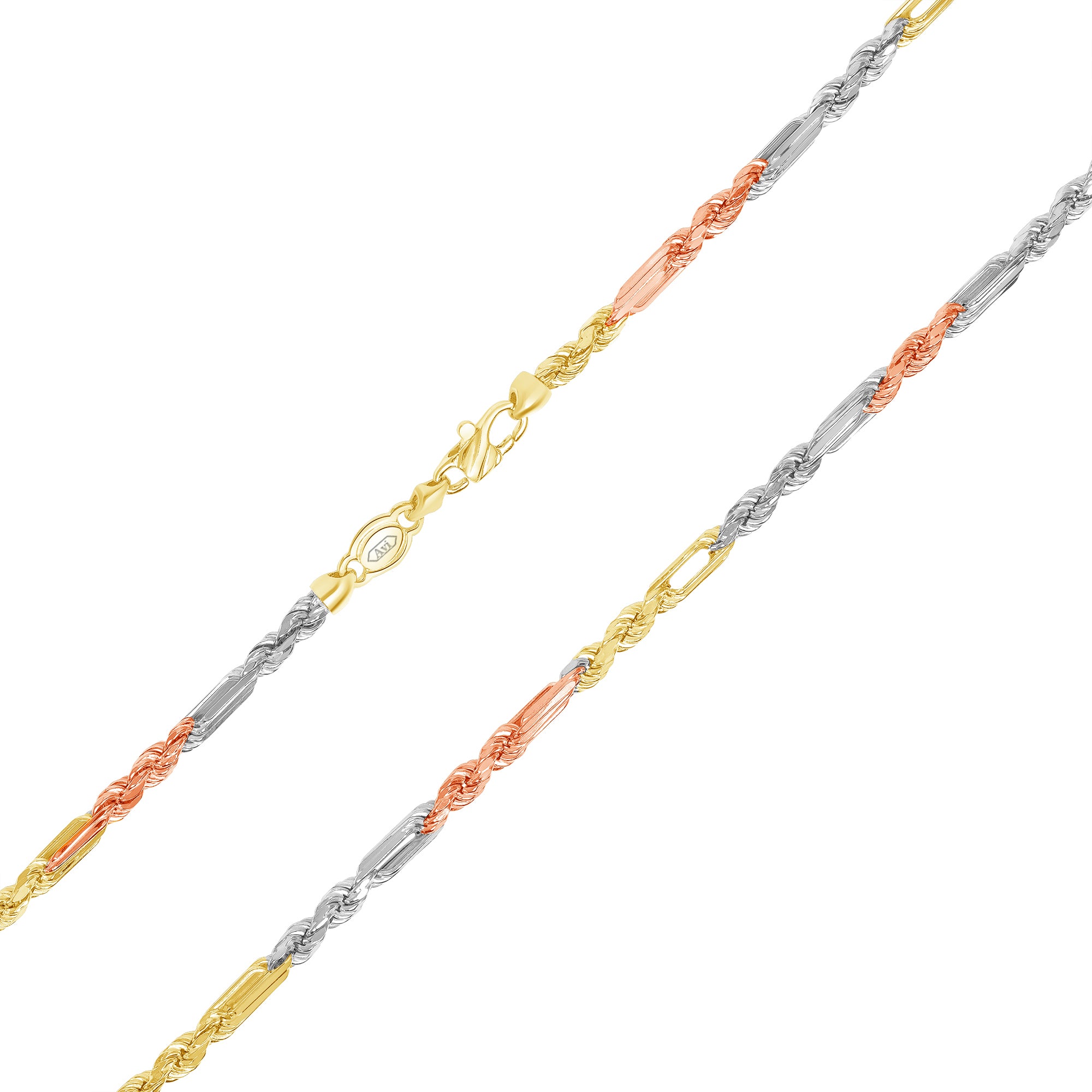 14k 4.3mm Tri-Color Semi-Solid Figarope (20''=)