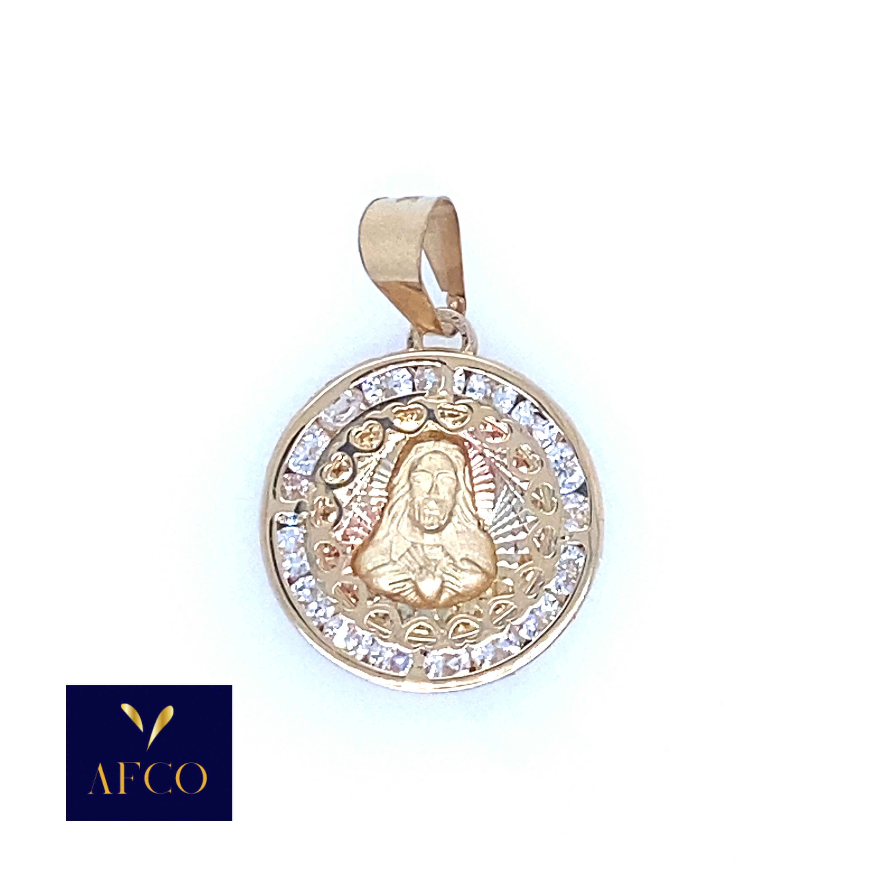 14k Jesus Sacred Heart Pendant Tri-Color 1.15gr