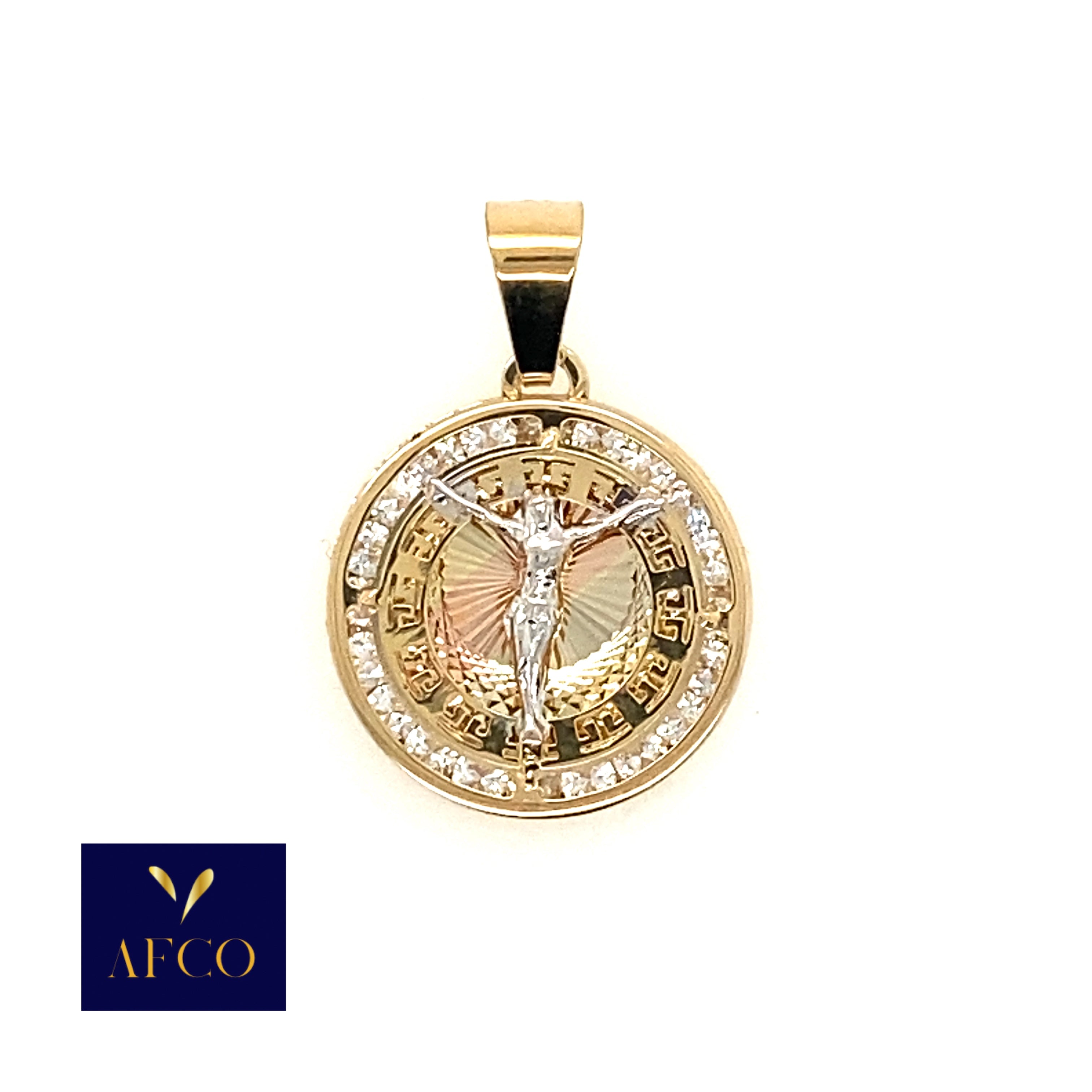 14k Jesus Cross Pendant Tri-Color 0.96gr